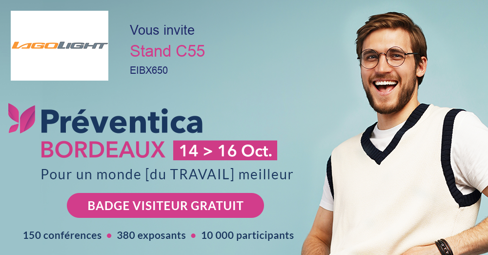Direction le sud ouest et la région Nouvelle Aquitaine pour LAGOLIGHT avec le salon Préventica, qui fera étape à Bordeaux, du 14 au 16 octobre.